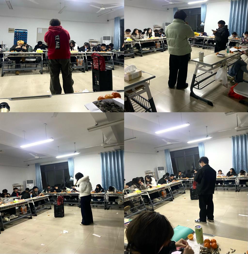 为迎接2026年元旦的到来,营造温馨喜庆的班级氛围,充分借助重大节庆时点发挥以文育人、以文化人功能,25级大数据(中外)班于2025年12月30日晚在班级教室举办了一场别开生面的元旦联欢会。全体同学齐聚一堂,用歌声传递喜悦,以笔墨书写祝福,共同度过了一段欢乐难忘的时光。