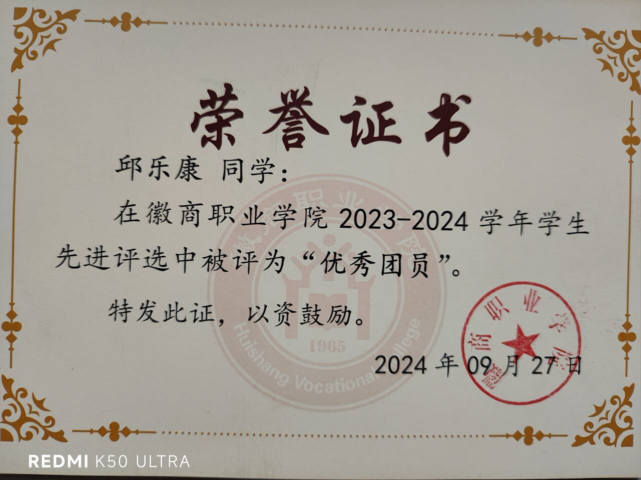 2021年9月至2023年9月,邱乐康参军入伍成为义务兵。部队里他以共青团员身份严格要求自己,刻苦训练、奋勇争先,斩获多项荣誉,不仅练就了坚韧不拔的意志,更坚定了听党话、跟党走的信念,这段军旅经历也成为他校园成长路上的宝贵精神财富。