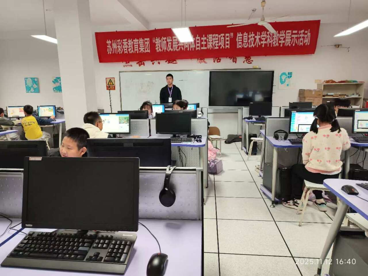 实习期间,邱乐康前往江苏省苏州市姑苏区玉成实验小学担任计算机编程老师,结合软件技术专业所学,用生动的方式为孩子们传授编程知识,既圆满完成教学任务,也让自身专业能力在实践中得到锤炼。